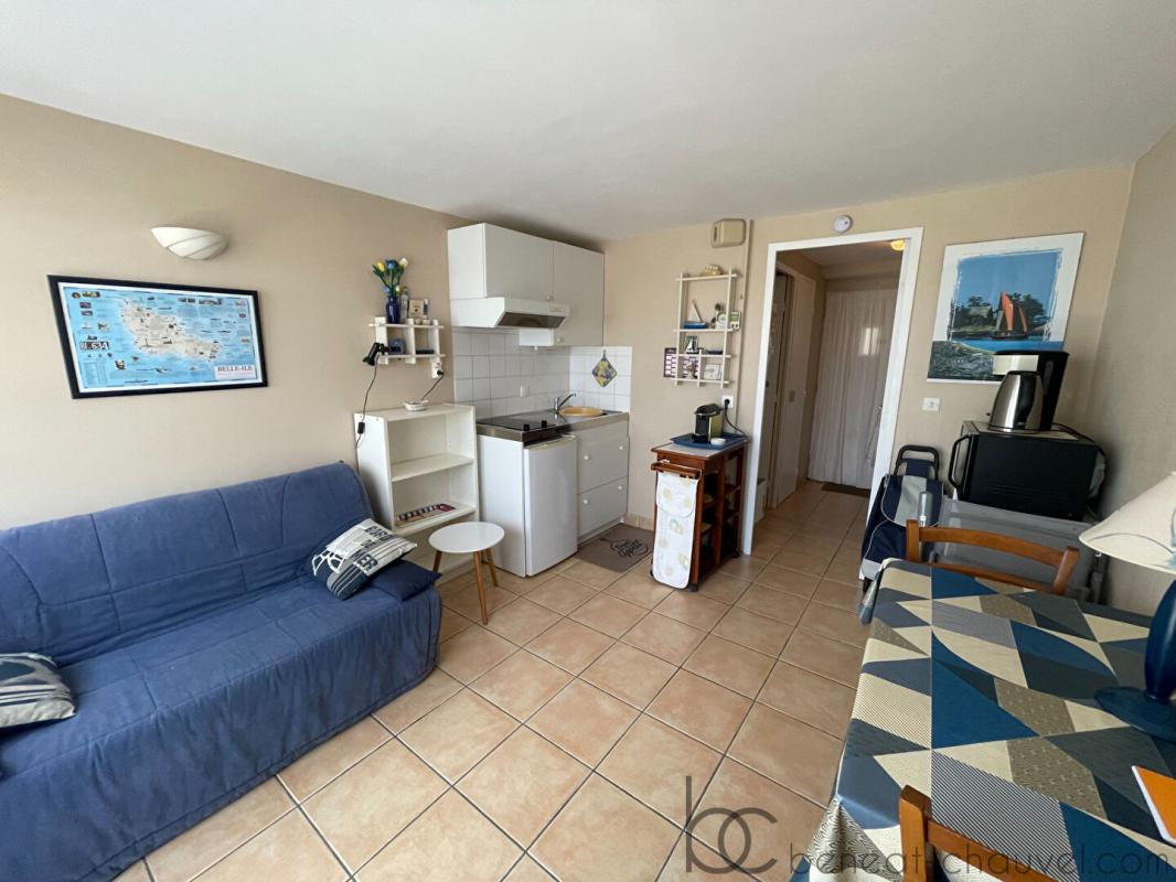 A proximité immédiate de la plage du Fogéo et du port du crouesty, studio en parfait état comprenant entrée, coin nuit, salle d’eau avec wc, séjour avec cuisine équipée, terrasse. A voir rapidement.