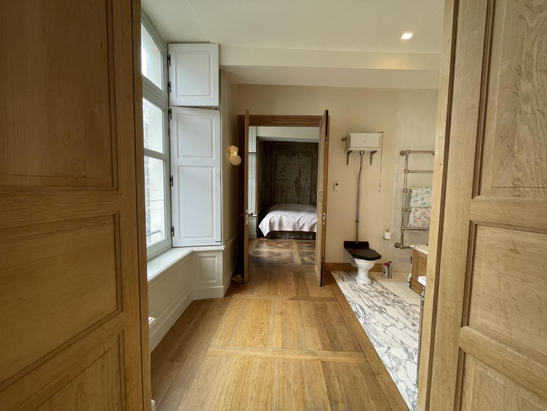 Au cœur historique de Vannes, dans un immeuble standing, appartement T2 meublé, vous offrant : Salon séjour sur parquet chêne, cuisine aménagée et équipée en chêne massif de chez Bulthaup (hotte, piano avec four (AGA Cooker 3 fours qui rayonne de sa chaleur douce dans la cuisine, qui est chaude nuit et jour), réfrigérateur combiné, lave vaisselle), suite parentale avec lit 180X200 EALA HASTENS ( en crain de cheval et laine ( ressorts -naturel extrêmement confortable)sur magnifique parquet avec ancienne cheminée, espace bureau, espace buanderie, salle de bains (en marbre et meubles de salle de bain de chez Drummonds) et wc.