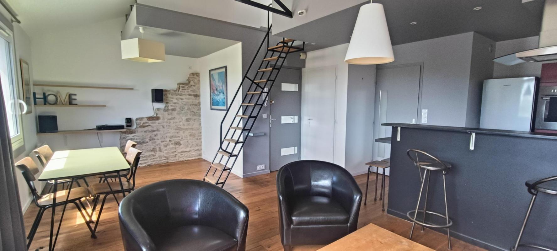 Intra muros, bel appartement meublé de T2 Bis meublé, au 4ème étage, avec vue imprenable sur la ville de Vannes.