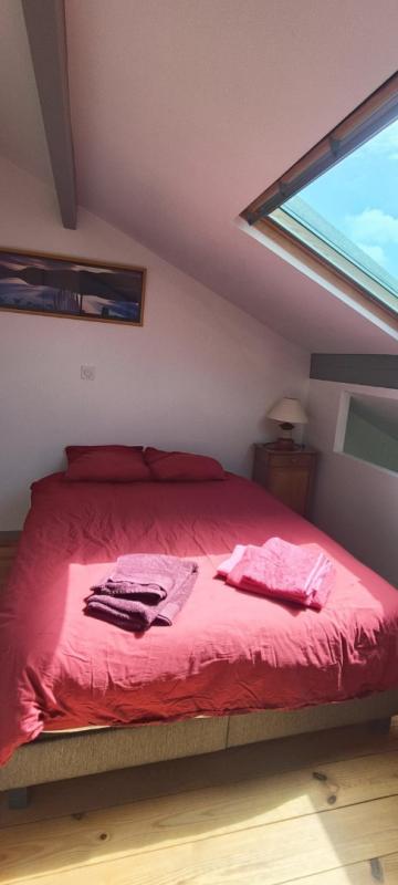 A l’étage une chambre avec grand placard, un coin bureau, une salle d’eau .