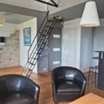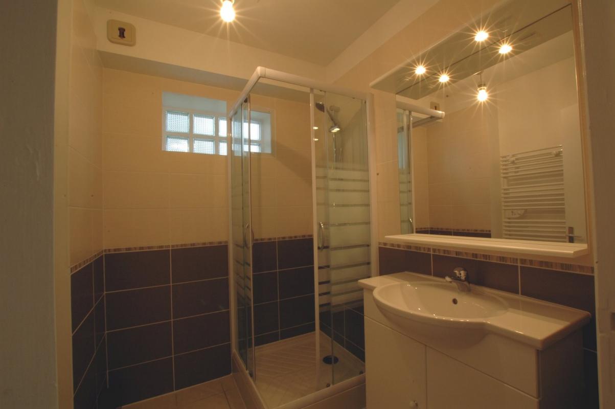 Entrée, séjour avec cuisine aménagée, chambre avec placard, salle de bains, wc.