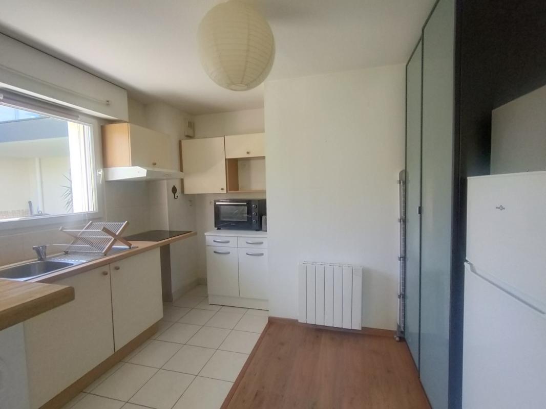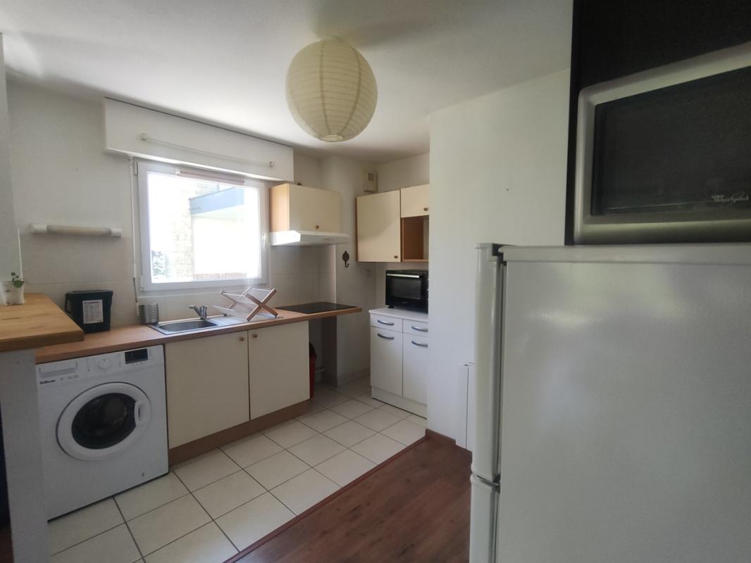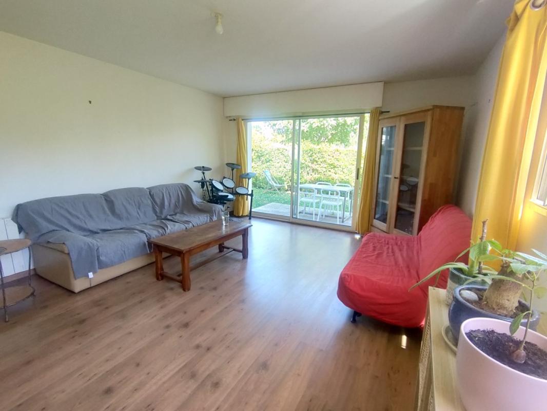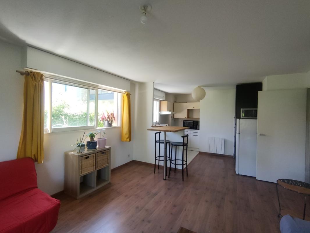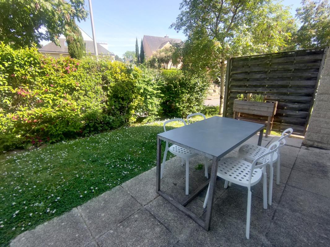 VANNES – A cinq minutes du Port de Vannes à pied, un appartement de T2, exposé sud-est, situé au rez de chaussée d’une petite résidence, et comprenant : Entrée avec placard, grand séjour sur parquet flottant ouvrant sur jardin privatif de 36m² environ, cuisine américaine aménagée et équipée, une chambre, salle de bains, wc. Chauffage électrique individuel. Deux terrasses de 14m² environ (séjour et chambre). Place de parking extérieur privative.