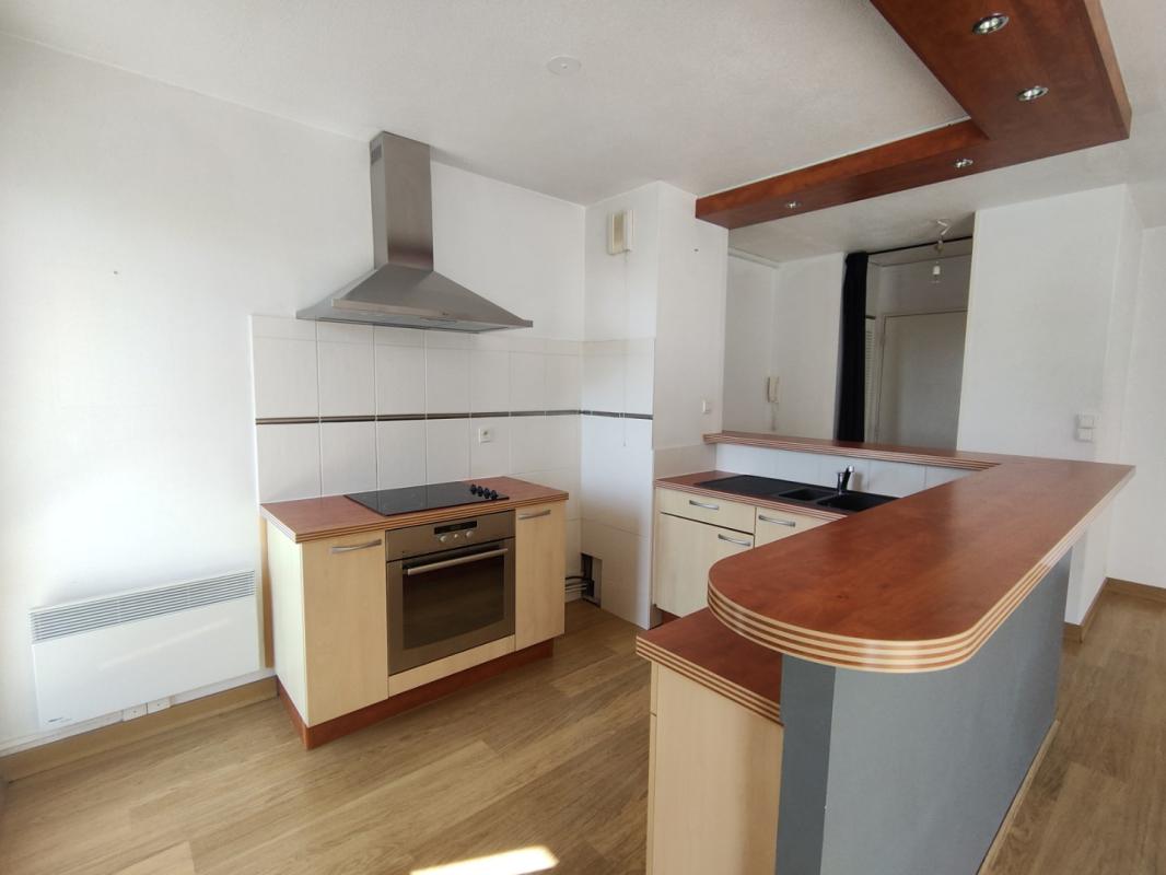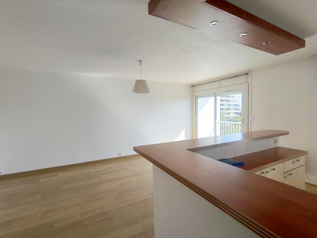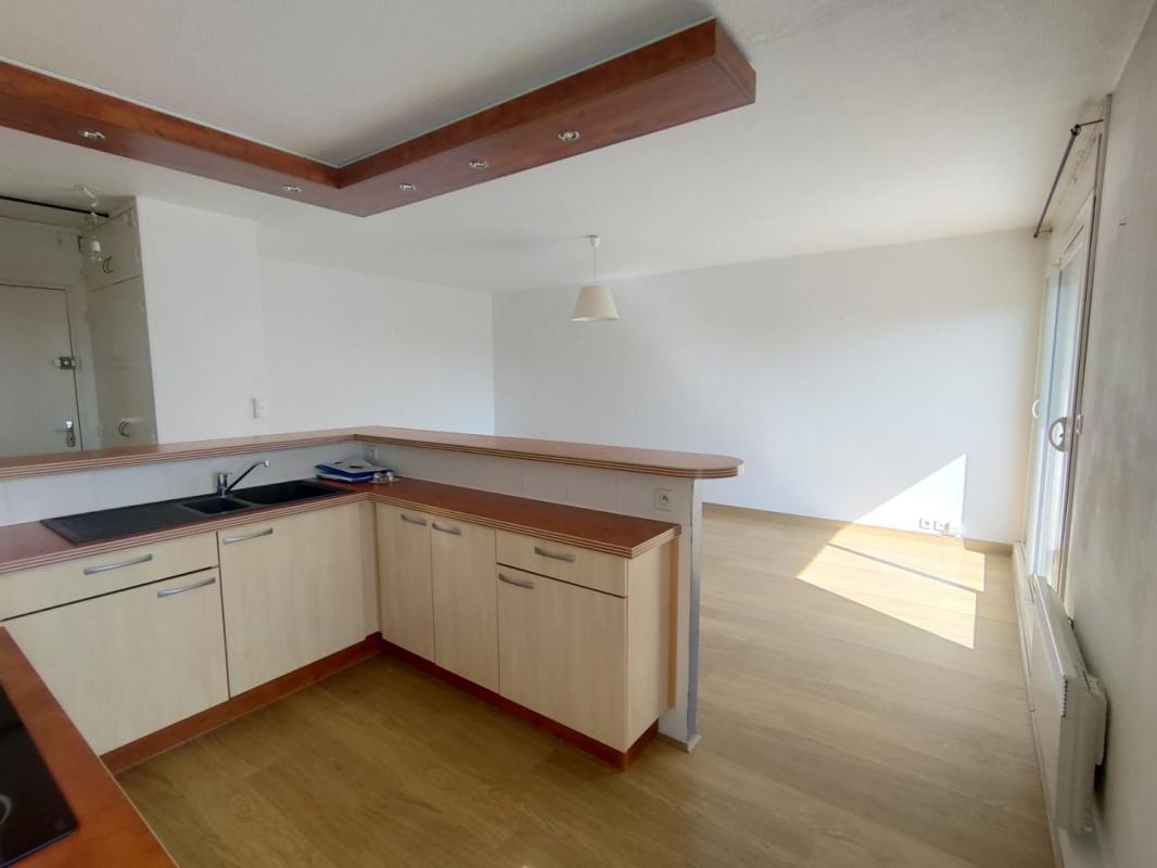 VANNES. Appartement de type 2, au 3ème étage avec ascenseur, dans une résidence sécurisée et comprenant: entrée avec placard, séjour avec terrasse, cuisine ouverte aménagée et équipée (hotte, plaque, four), une chambre avec placard, salle d’eau avec WC. Cave. Parking extérieur. Chauffage électrique.