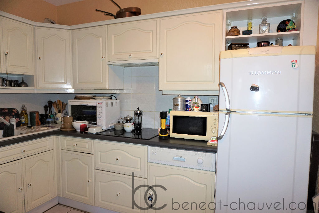 Vous trouverez un cellier au même niveau que l’appartement et un garage en sous-sol.
