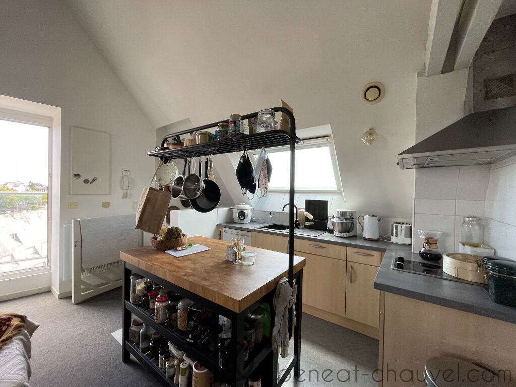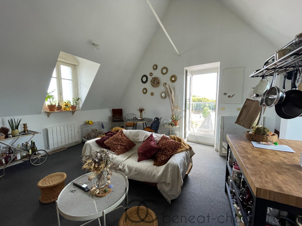 Vannes intramuros, splendide 3 pièces de 41.8 m² (50.5 m² utiles) dans un immeuble de caractère à la vue dégagée, il vous offre un séjour avec cuisine, une chambre, salle d’eau, wc. Mezzanine (chambre).