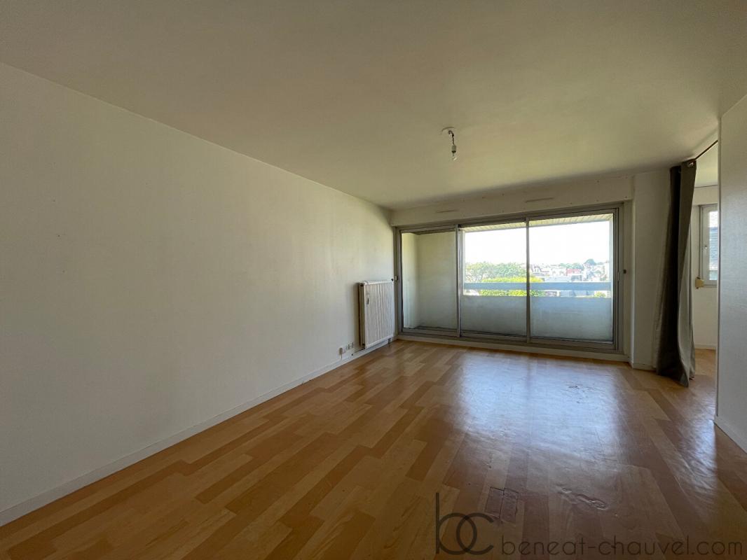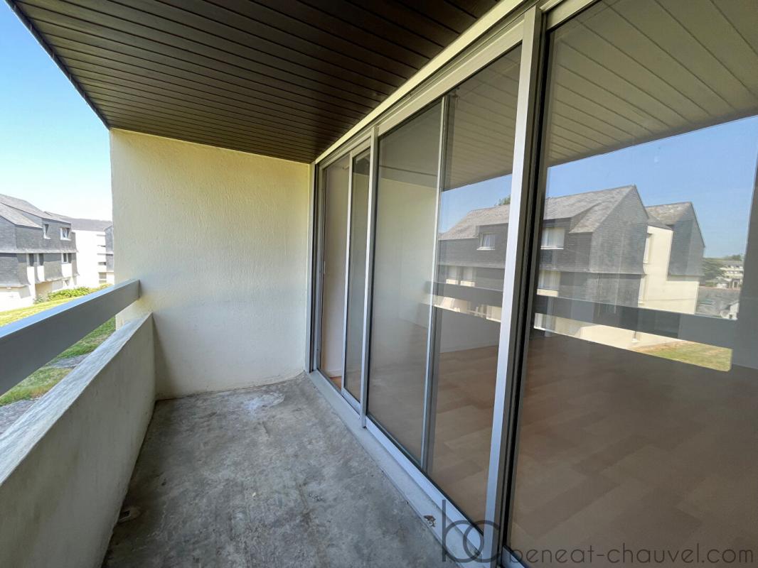 Vannes Port, dans une résidence tranquille, très agréable T1 bis à la vue dégagée comprenant Hall, séjour sur terrasse à l’ouest, cuisine, coin chambre, salle de bains, wc. Un parking extérieur.