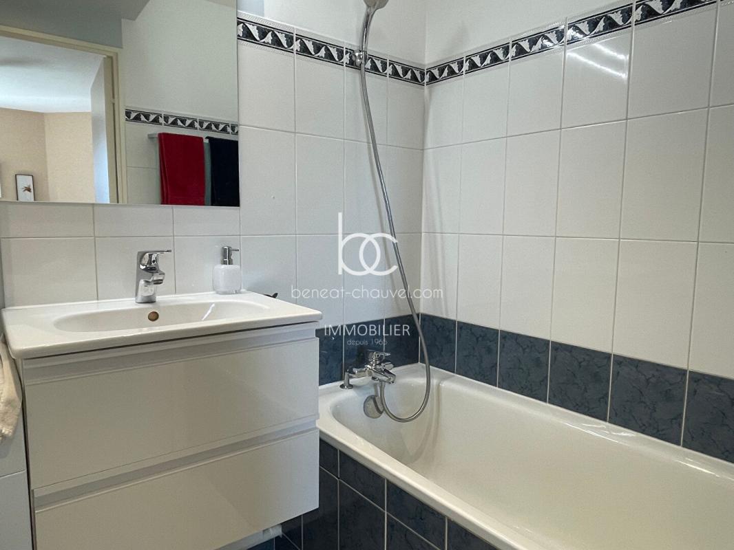 Entrée munie d’un placard, cuisine équipée et aménagée récente ouverte sur un séjour salon prolongé par une terrasse carrelée avec store banne, chambre avec placard, salle de bains, wc séparé avec lave mains.