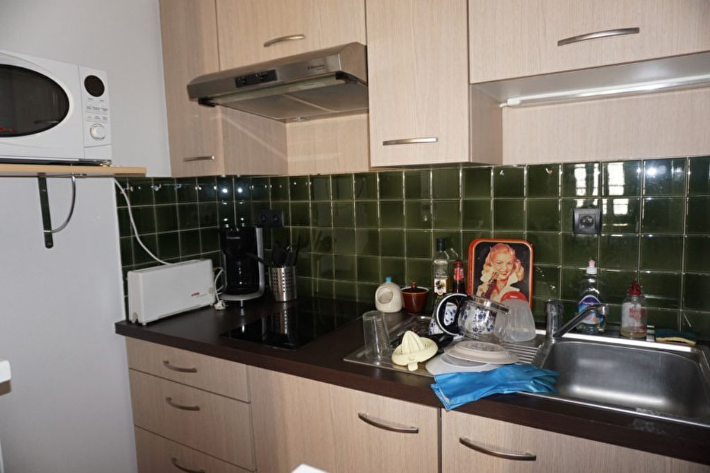 Hall, séjour avec cuisine équipée, une chambre, salle d’eau, wc.