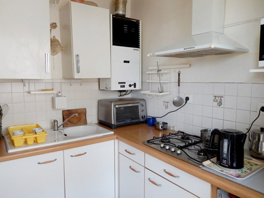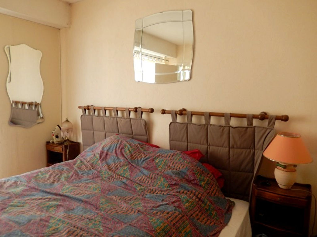 Entrée avec placard, séjour donnant sur une terrasse, cuisine aménagée équipée, une chambre avec placard, salle de bains, wc.
