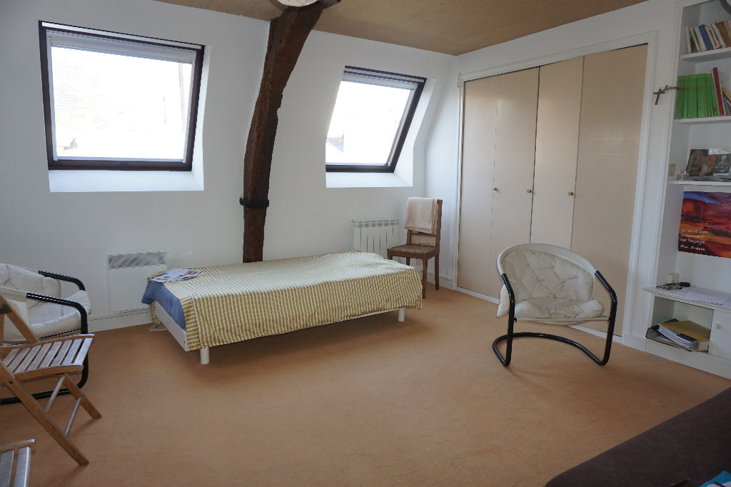 Vannes au coeur de l’intramuros, beaucoup de charme pour ce duplex comprenant : Hall, séjour salon, cuisine, salle de bains, wc, une chambre. Dernier étage.