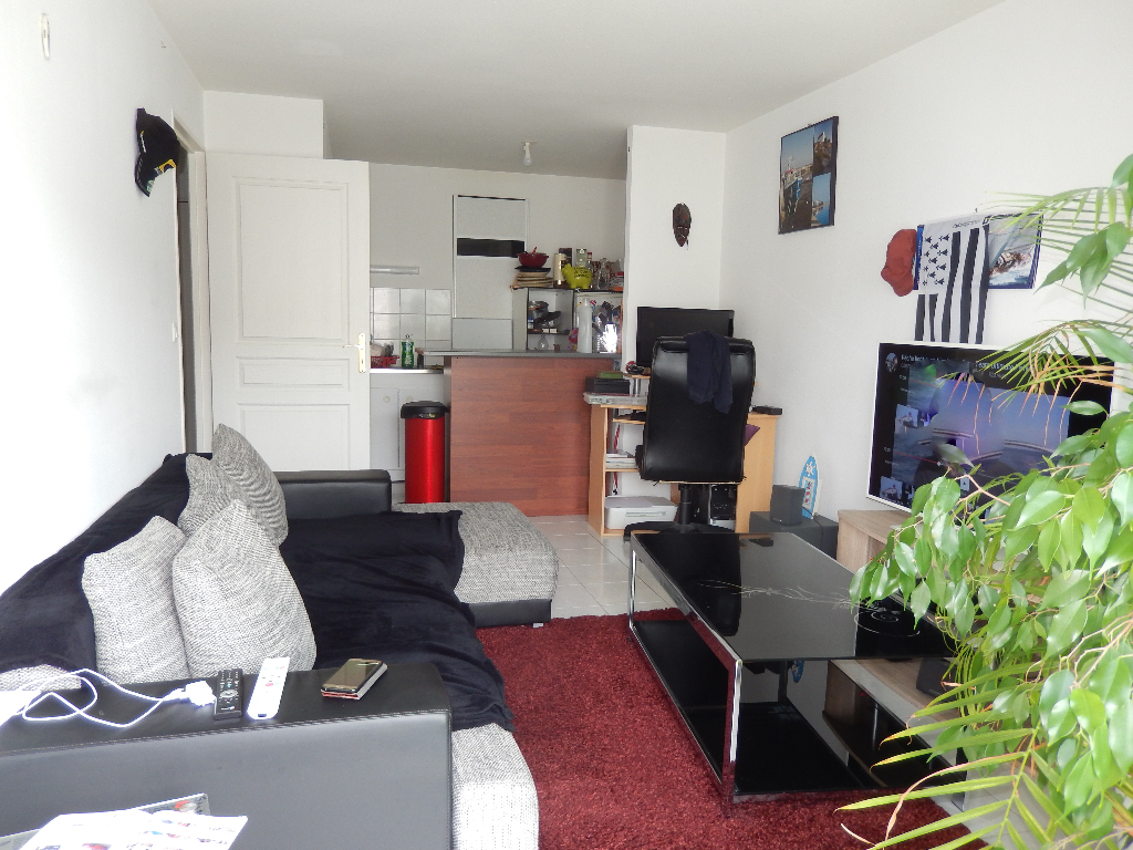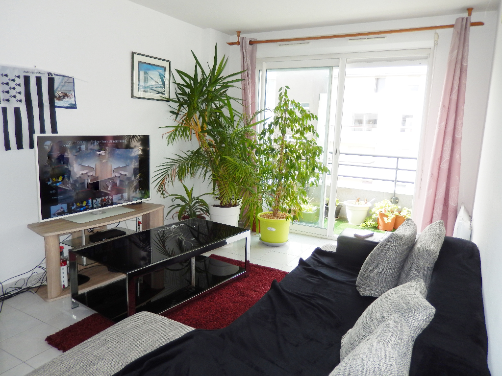 Vannes est, appartement de type 2 exposé plein sud dans résidence récente comprenant : Entrée avec placard, séjour-salon donnant sur un balcon, cuisine ouverte, une chambre avec placard, salle de bains, wc