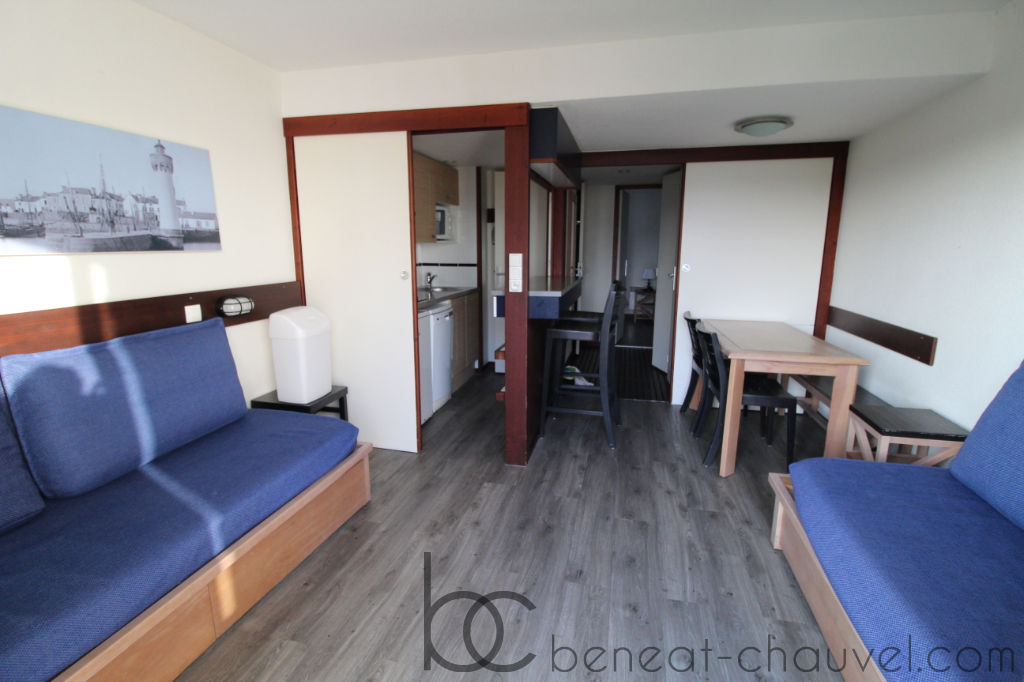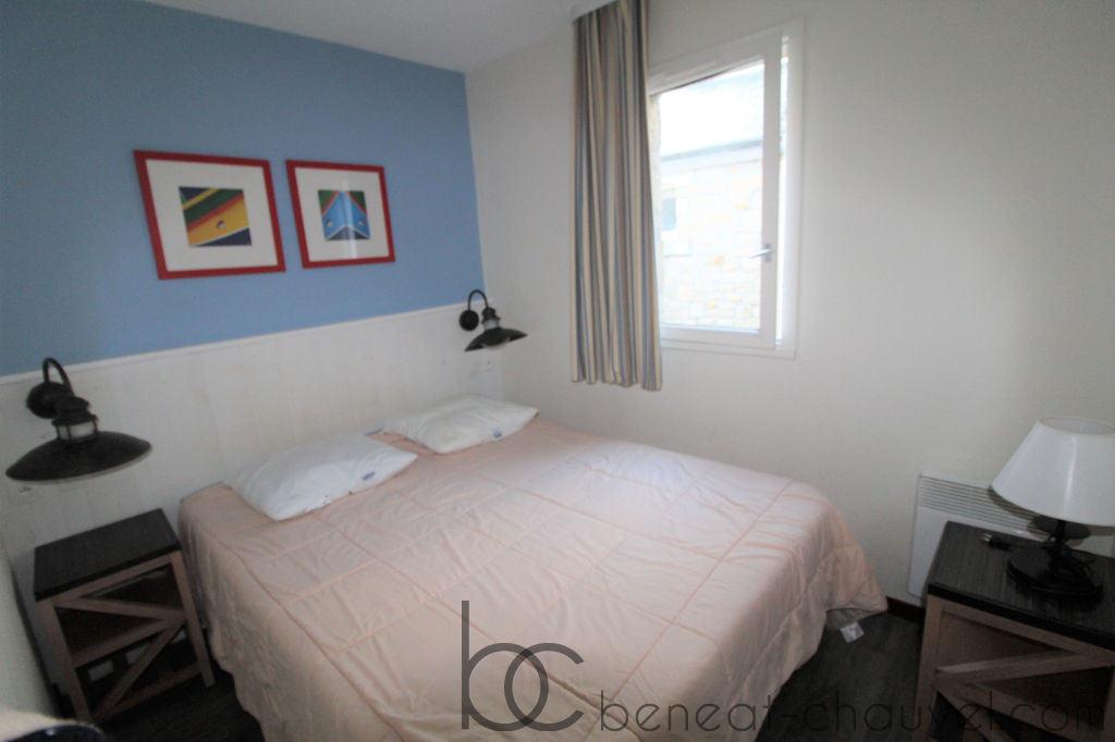 EXCLUSIVITE BENEAT CHAUVEL dans une résidence en accès direct à la plage du Fogeo, cet appartement rénové vous attend pour passer d’agréables moments. Il comprend, entrée, pièce de vie avec petit coin kitchenette, chambre , salle de bains, W.C. Casier plage. Jouissance privative d’un jardinet. Parking privatif en sous-sol.