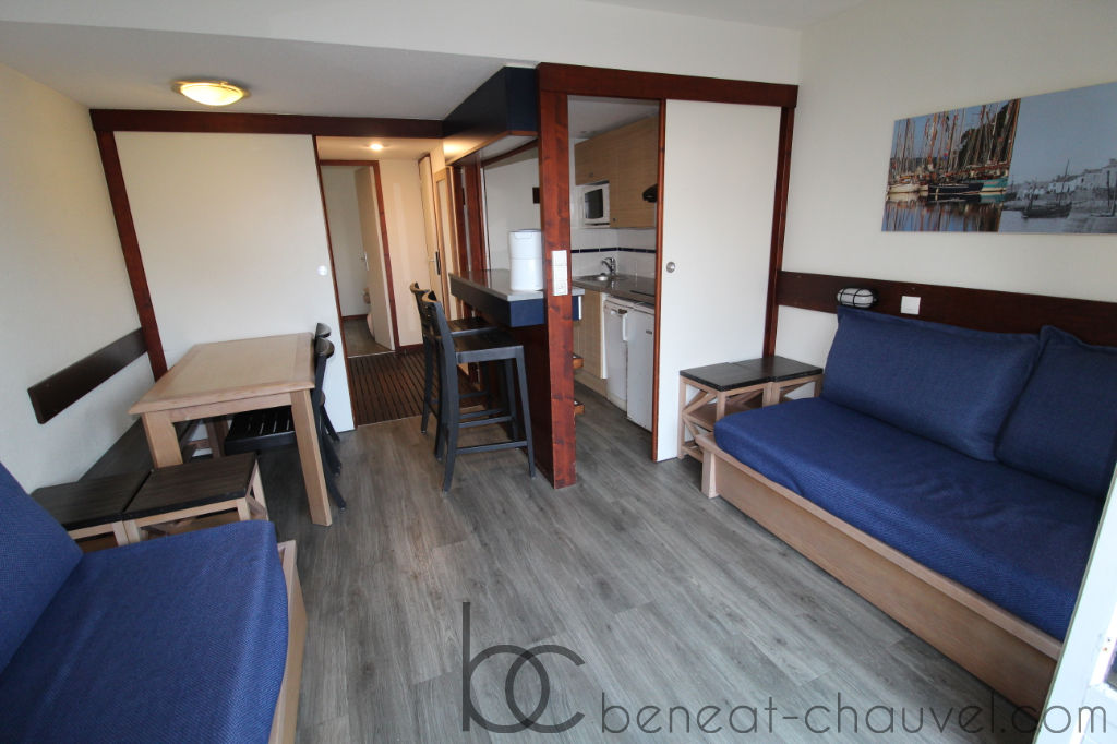 EXCLUSIVITE BENEAT CHAUVEL dans une résidence en accès direct à la plage du Fogeo, cet appartement rénové vous attend pour passer d’agréables moments. Il comprend, entrée, pièce de vie avec petit coin kitchenette, chambre , salle de bains, W.C. Casier plage. Parking privatif en sous-sol.
