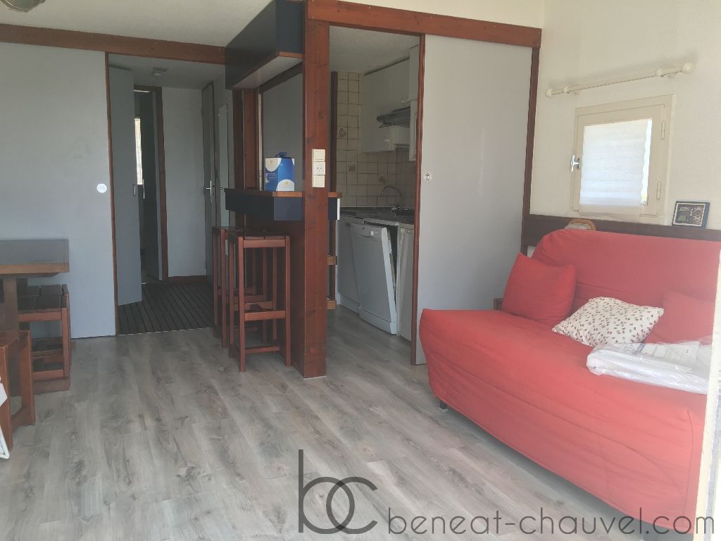 Le cabinet BENEAT CHAUVEL vous propose dans une résidence en accès direct avec la plage du Fogeo cet appartement T2 situé au rez de chaussée comprenant entrée, séjour, cuisine, chambre, salle de bains, W.C et rangements. Casier plage. Jardinet. Très belle exposition plein sud avec une petite percée sur l’océan.