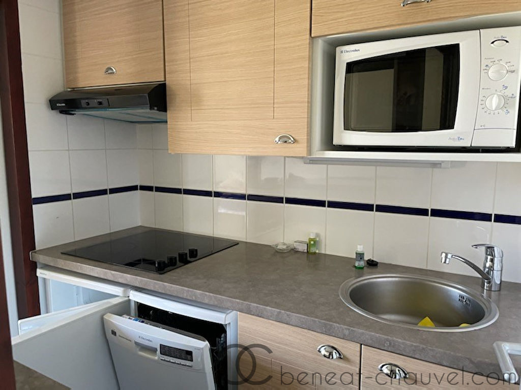 Accès direct plage du fogeo et port crouesty à pied pour cet appartement rénové situé au premier étage. Il comprend : entrée, pièce de vie avec coin kitchenette aménagé et équipé, chambre, salle de bains. Casier plage. Parking en sous-sol.
