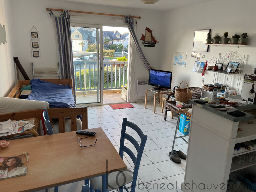 Vue sur le port pour cet appartement 2 pièces comprenant entrée, séjour, terrasse vue sur le port, cuisine aménagée, grande chambre avec rangements, wc, salle d’eau. Jouissance privative d’un casier plage. Parking privatif. Locataire en place.