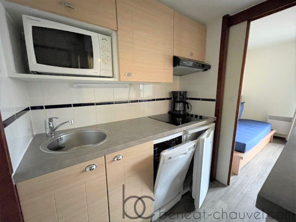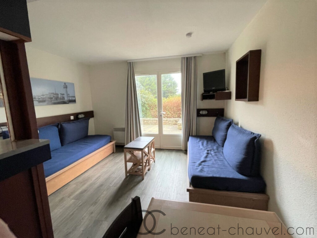 EXCLUSIVITE BENEAT-CHAUVEL – Résidence agréable et en accès direct Plage du Fogeo et Port Crouesty à pied. Cet appartement situé au rez-de-chaussée comprend : entrée, pièce de vie avec coin kitchenette aménagé et équipé, chambre, salle de bains. Casier plage. Place de parking en sous-sol privative. Pied à terre idéal !