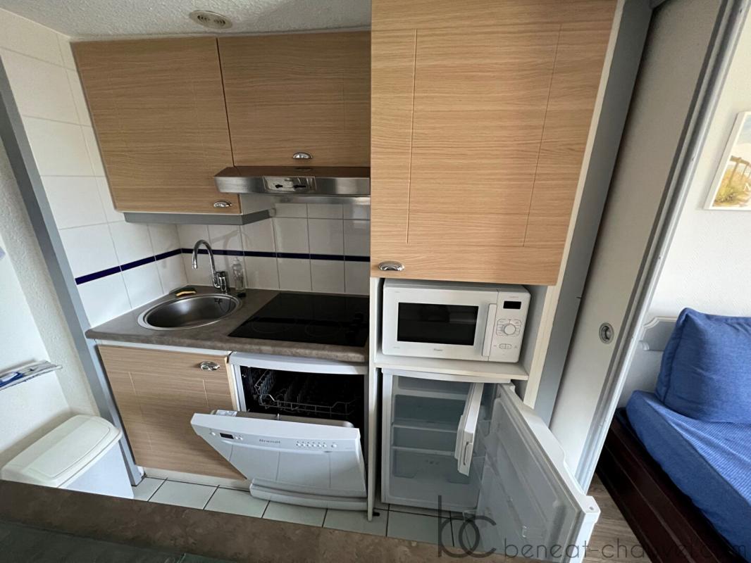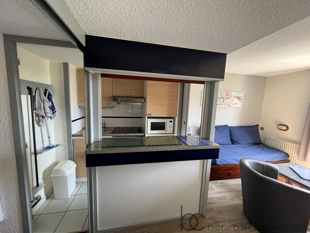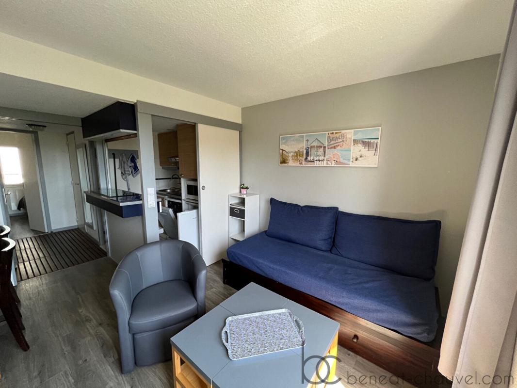 Le Cabinet Béneat Chauvel vous présente en exclusivité, cet appartement de Type 2 de 27m2 environ situé entre le port et la plage du Fogeo, au premier étage de la résidence et comprenant : entrée, séjour/salon avec coin kitchenette équipé et aménagé, une chambre, une salle de bains, wc indépendant. casier de plage. parking commun sécurisé. Idéal pied à terre en bord de mer ou pour investissement locatif. Le bien sera disponible à partir du 1er septembre 2022.