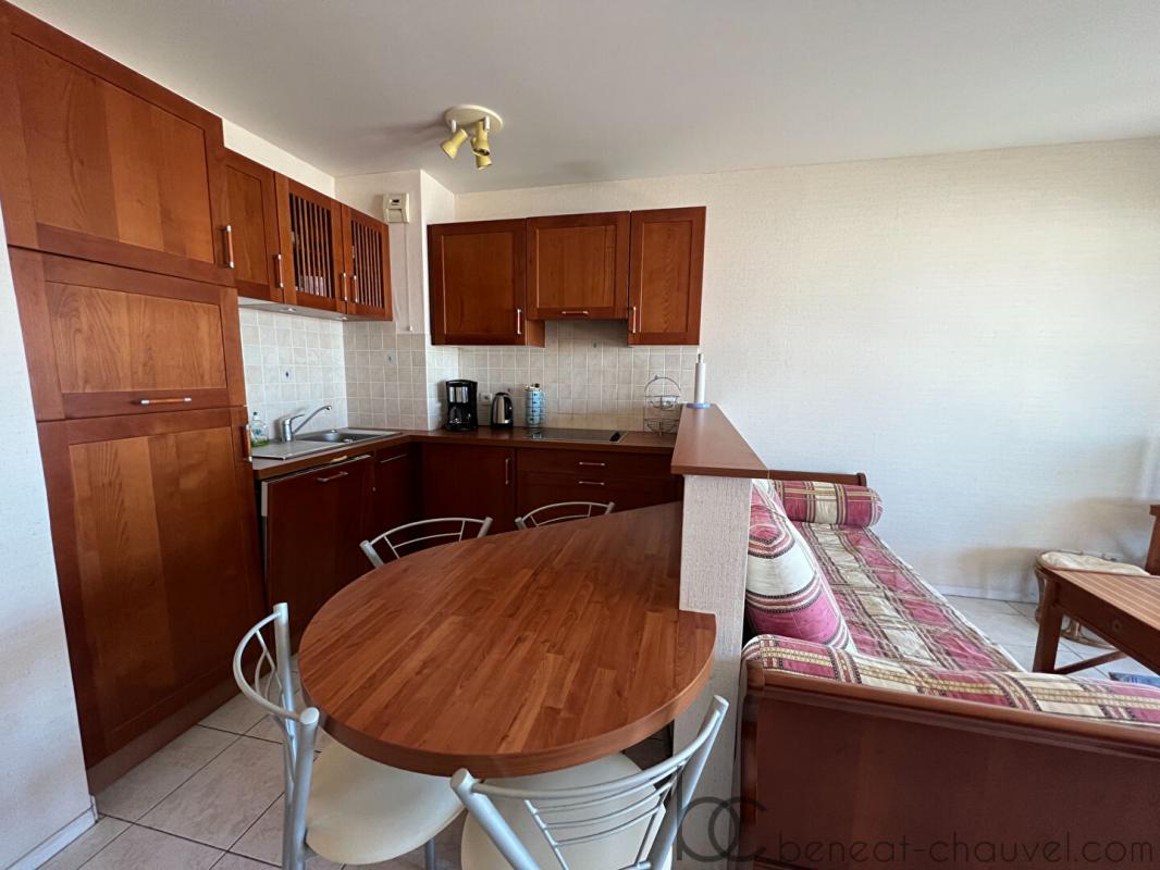Venez découvrir cet appartement deux pièces avec balcon donnant sur le port du Crouesty et comprenant: une entrée, séjour/salon avec cuisine équipée et aménagée, une chambre, salle d’eau, wc indépendant. place de parking privative. Vous profiterez d’une piscine au sein de la résidence et de la proximité des commerces et de la plage du Fogeo.