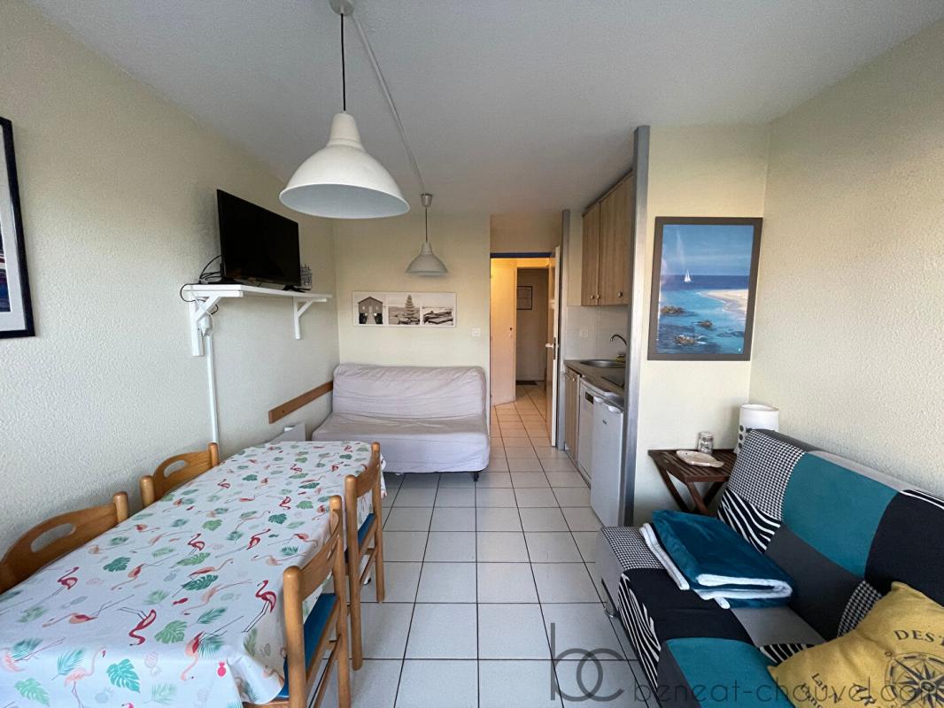 EXCLUSIVITÉ – Dans une résidence en accès direct à la plage du Fogeo, proche du port et des commerces, cet appartement comprend entrée avec coin nuit, séjour/salon donnant sur un balcon, coin cuisine aménagée et équipée, salle de bains avec WC.