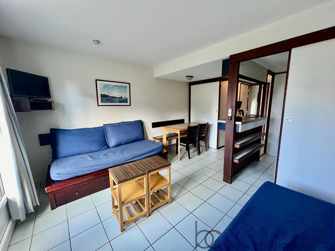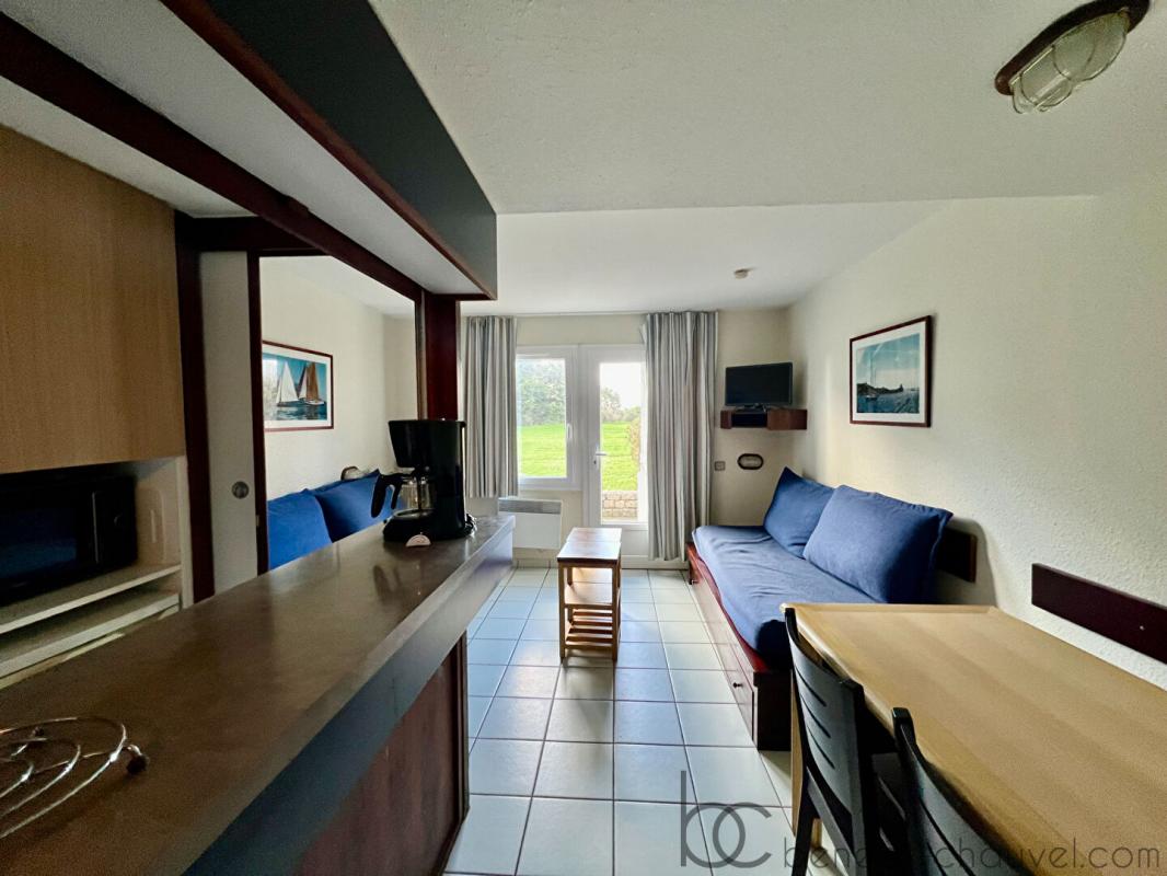 EXCLUSIVITE, venez découvrir cet appartement meublé de deux pièces, au rez-de-chaussée d’une résidence de vacances, avec accès direct à la plage du Fogeo et à proximité du Port du Crouesty.