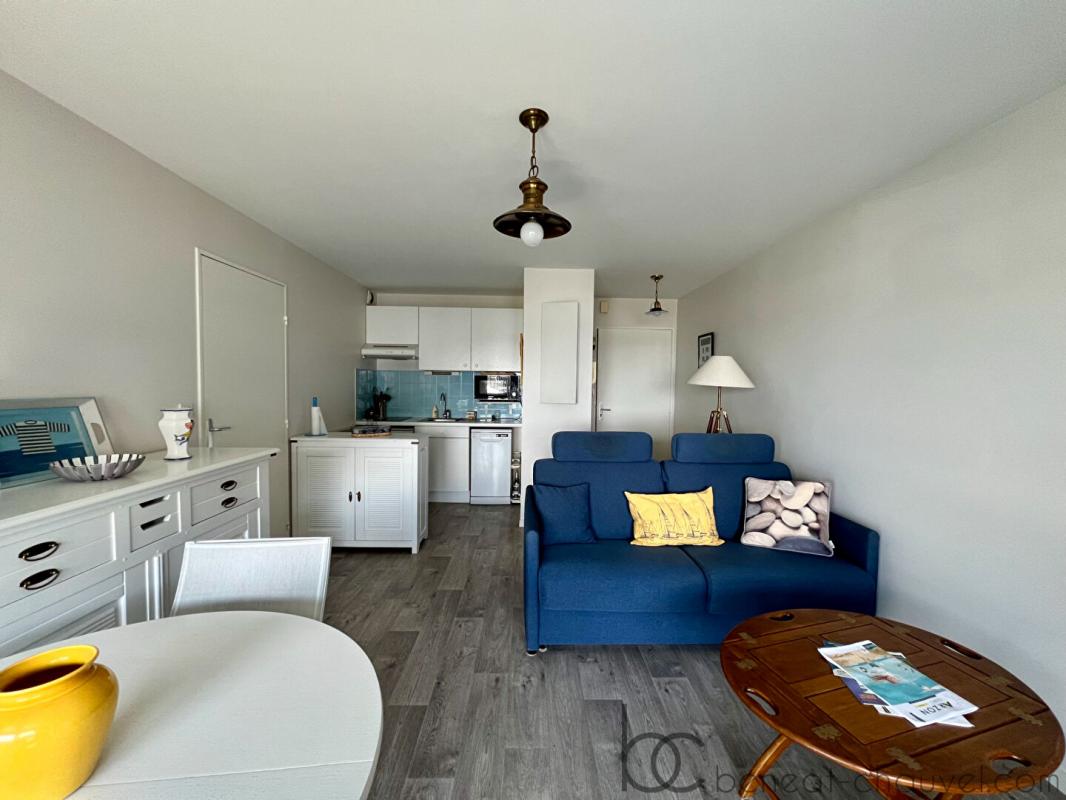 EXCLUSIVITE, venez découvrir ce bel appartement rénové et meublé, avec une belle vue sur l’entrée du port du Crouesty, aucun travaux à prévoir, vous disposez d’un séjour salon donnant sur un balcon, coin cuisine équipée et aménagé, une chambre avec salle d’eau, wc indépendant. Garage fermé en sous-sol. Proximité commerces, plages, port!! Vous disposez d’une piscine au sein de la résidence! Idéal comme pied à terre ou investissement locatif!