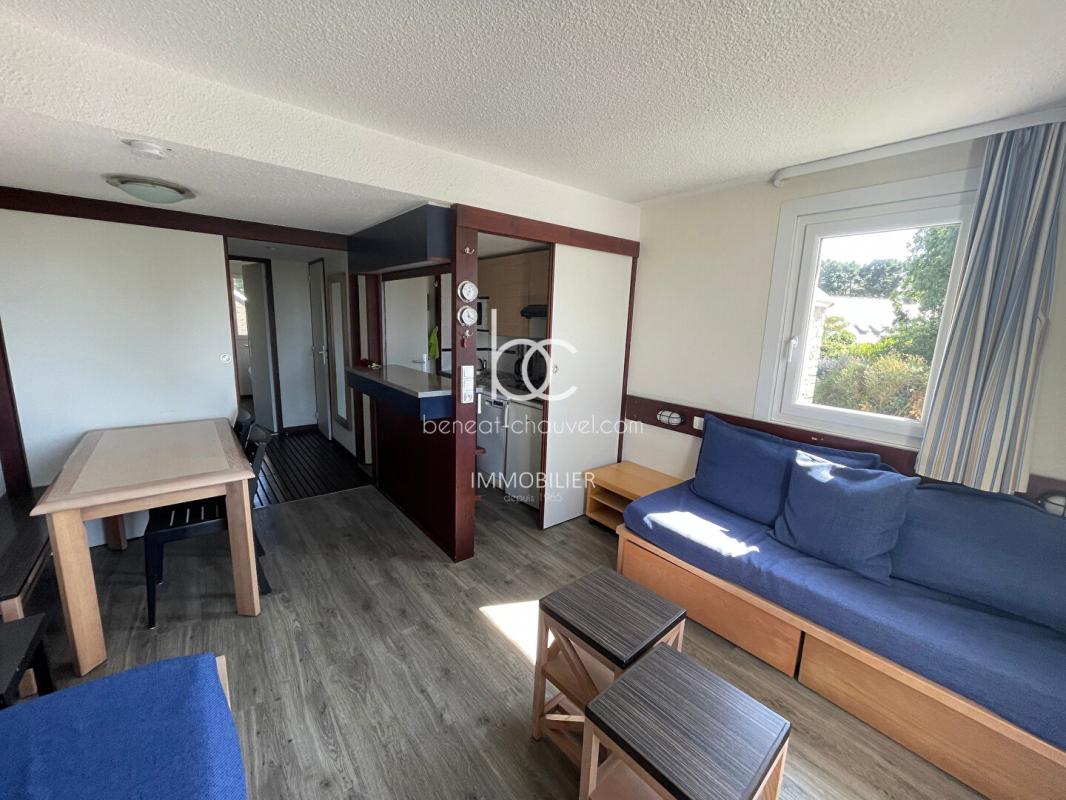 ARZON Port Crouesty. Découvrez cet appartement situé au 1er étage d’une résidence avec piscine et comprenant une entrée avec placard, un séjour-salon, une cuisine aménagée et équipée, une chambre, une salle de bains et un WC.