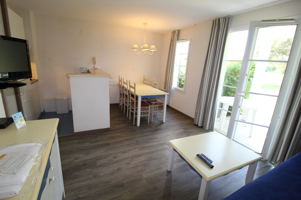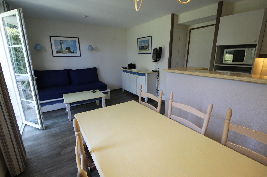 ARZON Port Crouesty, bel appartement exposé sud comprenant entrée, séjour salon avec cuisine ouverte donnant sur une terrasse, chambre, chambre cabine, salle de bains, salle d’eau avec WC. Place de parking privative.