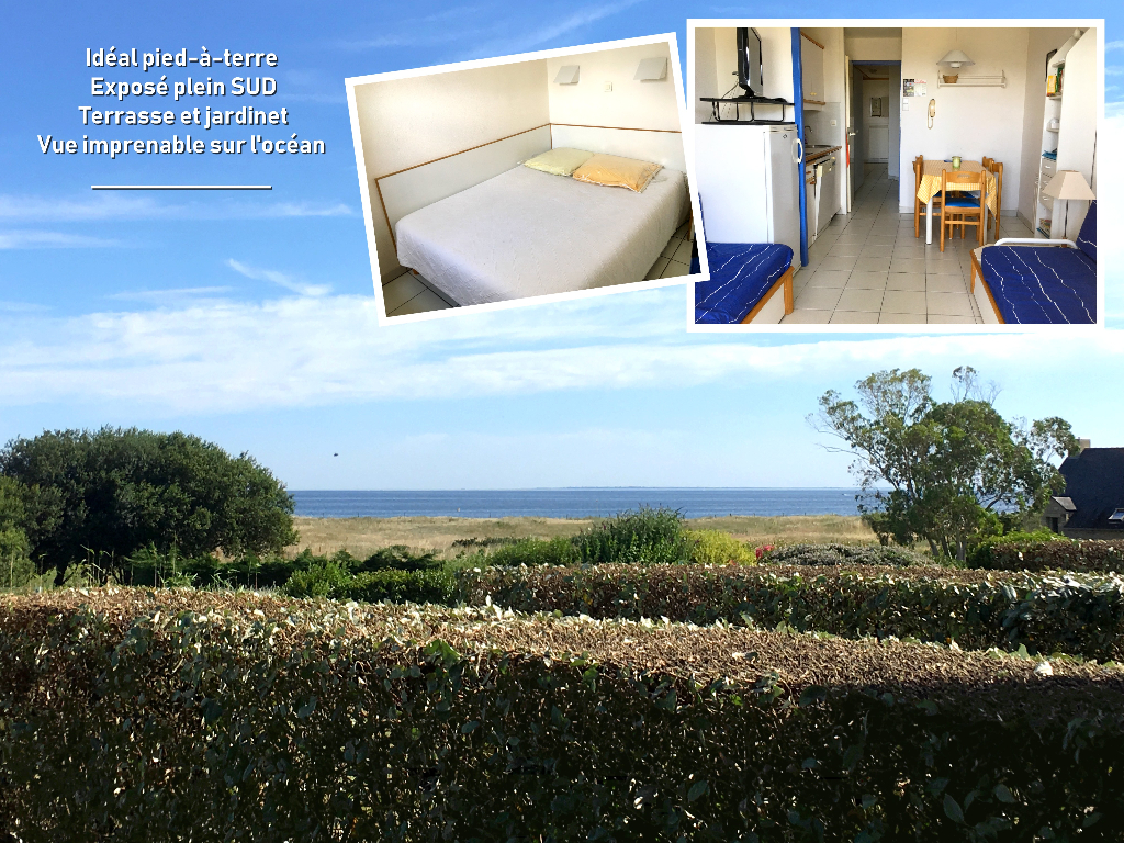 VUE IMPRENABLE SUR L’OCEAN pour ce pied à terre qui sera idéal pour vous. Il comprend entrée, pièce de vie avec kitchenette, salle de bains, WC, chambre, terrasse et Jardinet.