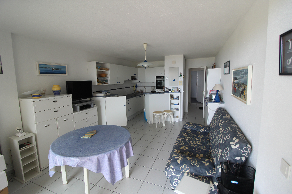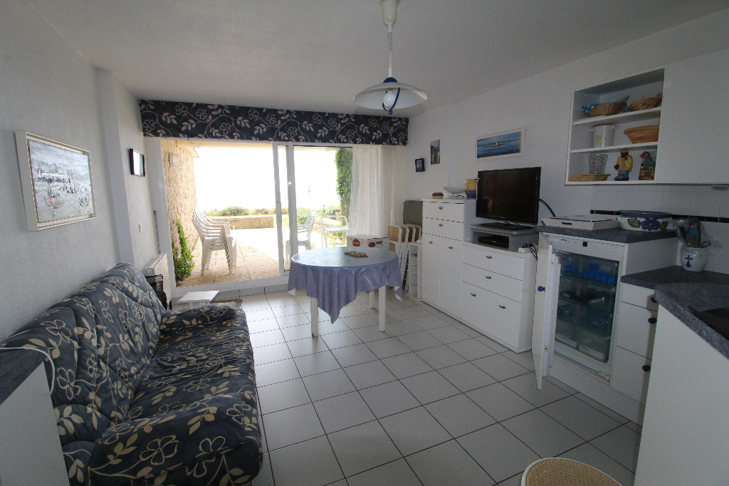 ARZON accès direct plage du fogeo pour cet appartement 2 pièces, idéal pied-à-terre,comprenant entrée, séjour avec cuisine aménagée et équipée refaite à neuf, chambre, salle d’eau et W.C.