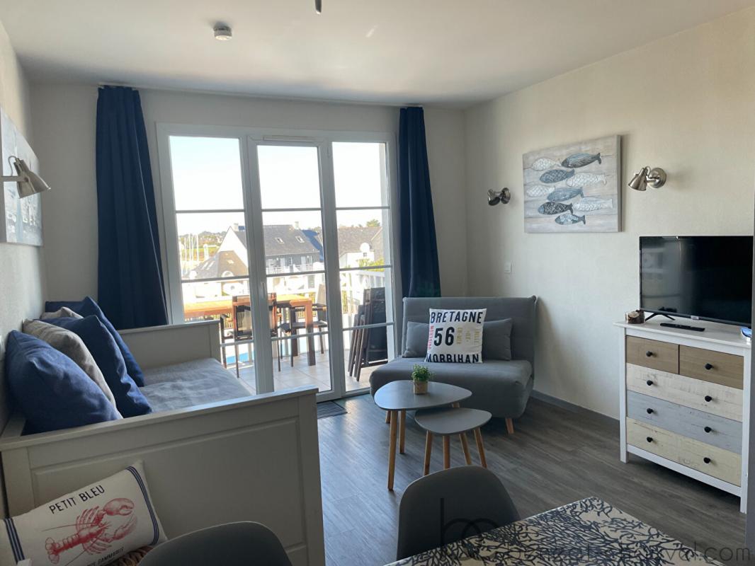 Le cabinet BENEAT CHAUVEL vous présente en EXCLUSIVITE au PORT CROUESTY, dans une résidence de qualité, un appartement duplex situé au premier étage comprenant, entrée, pièce de vie avec coin kitchenette, salle d’eau W.C. A l’étage, chambre avec salle de bains W.C. Terrasse. Parking aérien. Très belle vue dégagée.