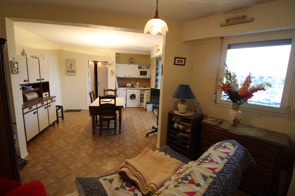 BENEAT CHAUVEL Belle vue sur le port pour ce 2 pièces comprenant : entrée, séjour donnant sur terrasse, cuisine équipée, chambre, salle d’eau, wc indépendant.