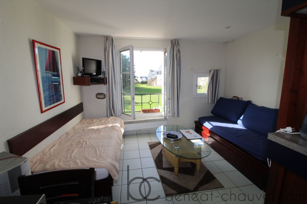 Dans une résidence en accès direct à la plage du Fogeo, cet appartement en bon état sera idéal comme investissement ou comme résidence secondaire. Il comprend : entrée, pièce de vie avec kitchenette aménagée et équipée, chambre, salle de bains, W.C. Très belle vue dégagée. Accès au parking collectif de la résidence.