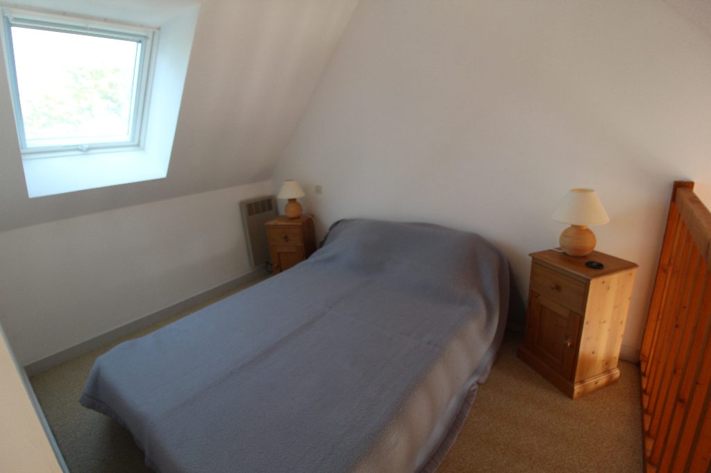Au rez-de-chaussée : Pièce de vie avec kitchenette, salle de bains, wc, chambre cabine, placard-A l’étage : chambre, rangements