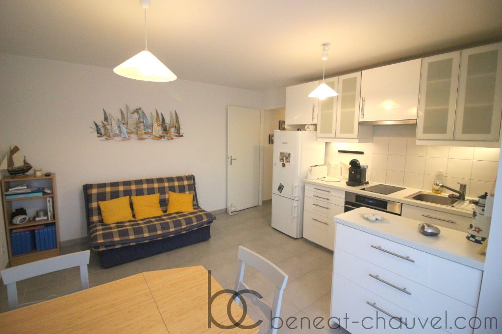 En plein centre de Sarzeau, Agréable résidence avec ascenseur, en parfait état, appartement comprenant entrée avec placard, séjour ouvert sur terrasse avec cuisine aménagée et équipée, chambre avec placard, salle d’eau et wc. Garage en sous-sol. Idéal comme pied à terre pour les vacances ou en investissement locatif ou y vivre à l’année. Coup de coeur assuré, à visiter sans tarder !