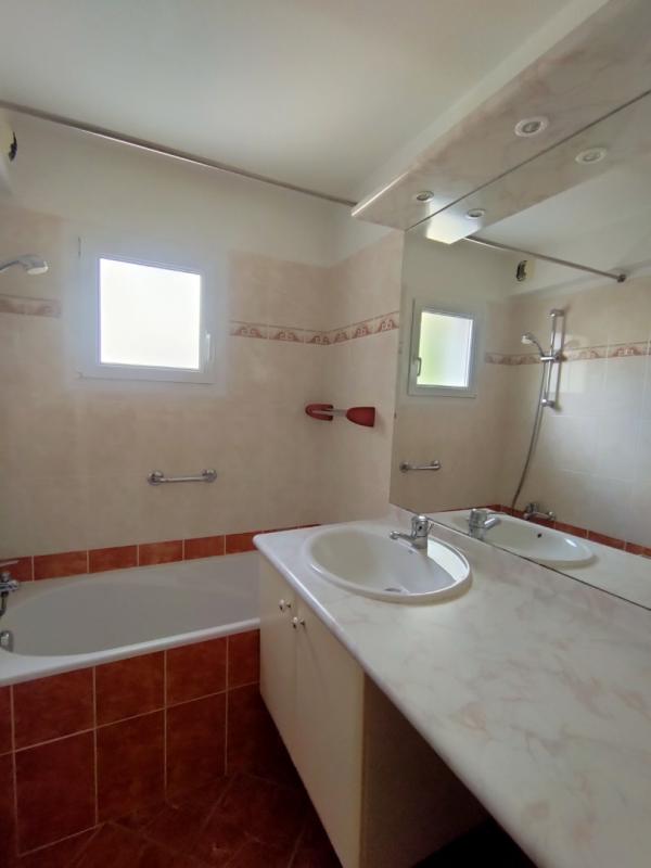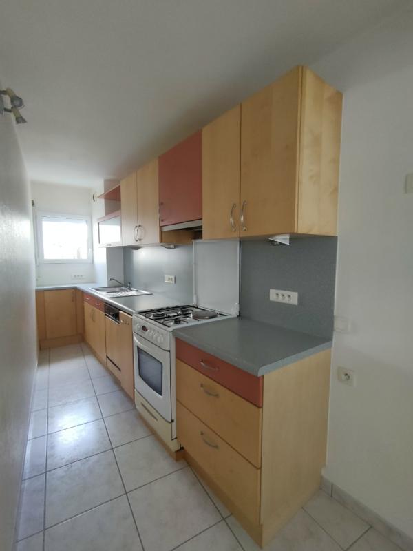 Entrée avec placards, salon séjour avec cuisine séparée aménagée et équipée (hotte, cuisinière gaz avec four, lave vaisselle), 2 chambres dont une avec placard, salle de bains avec branchement machine à laver et rangements. Cellier ou dressing