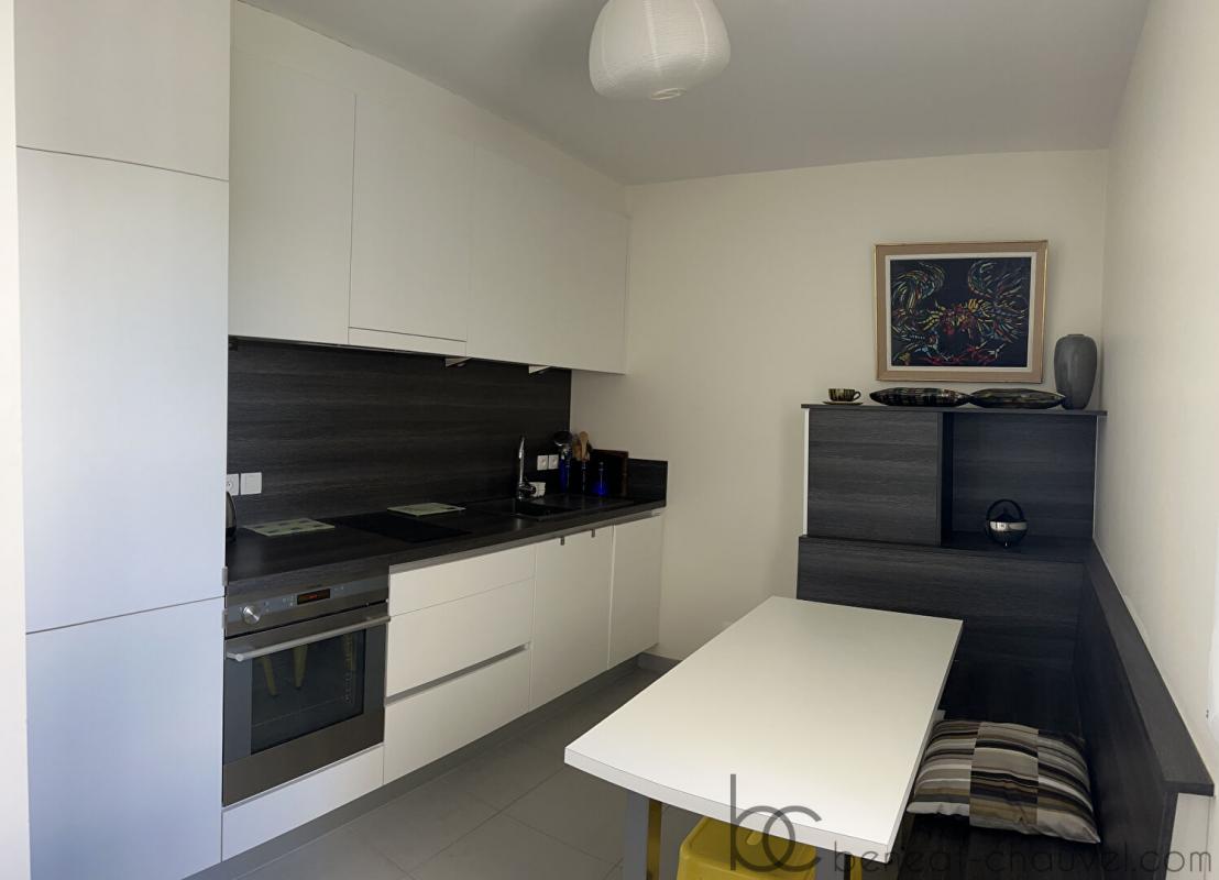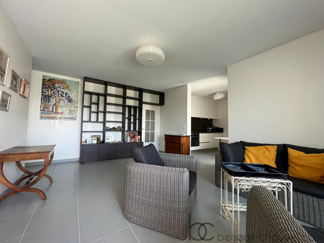 Rive droite du port dans résidence de standing au calme, cet appartement offre une vue dégagée sur la Rabine depuis la terrasse principale. Situé au dernier étage, il comprend une entrée avec placards, séjour-salon avec sa bibliothèque intégrée, cuisine entièrement aménagée et équipée avec un espace repas, 2 chambres dont une donnant sur un balcon, salle d’eau avec wc, cellier.