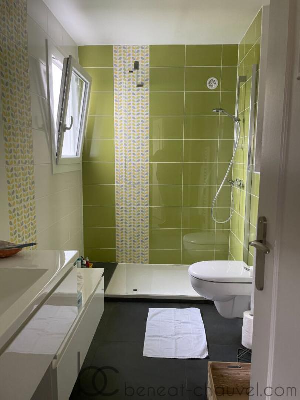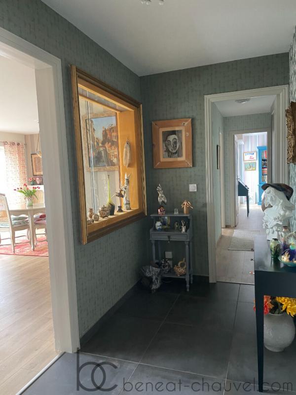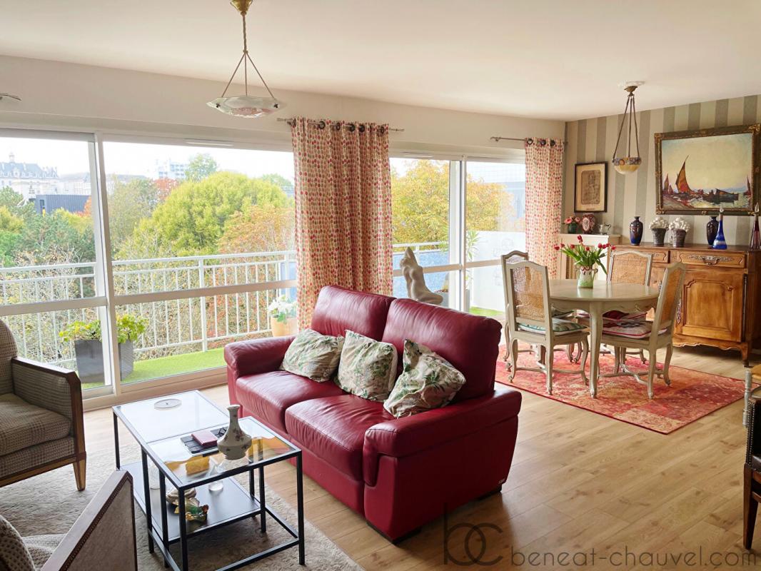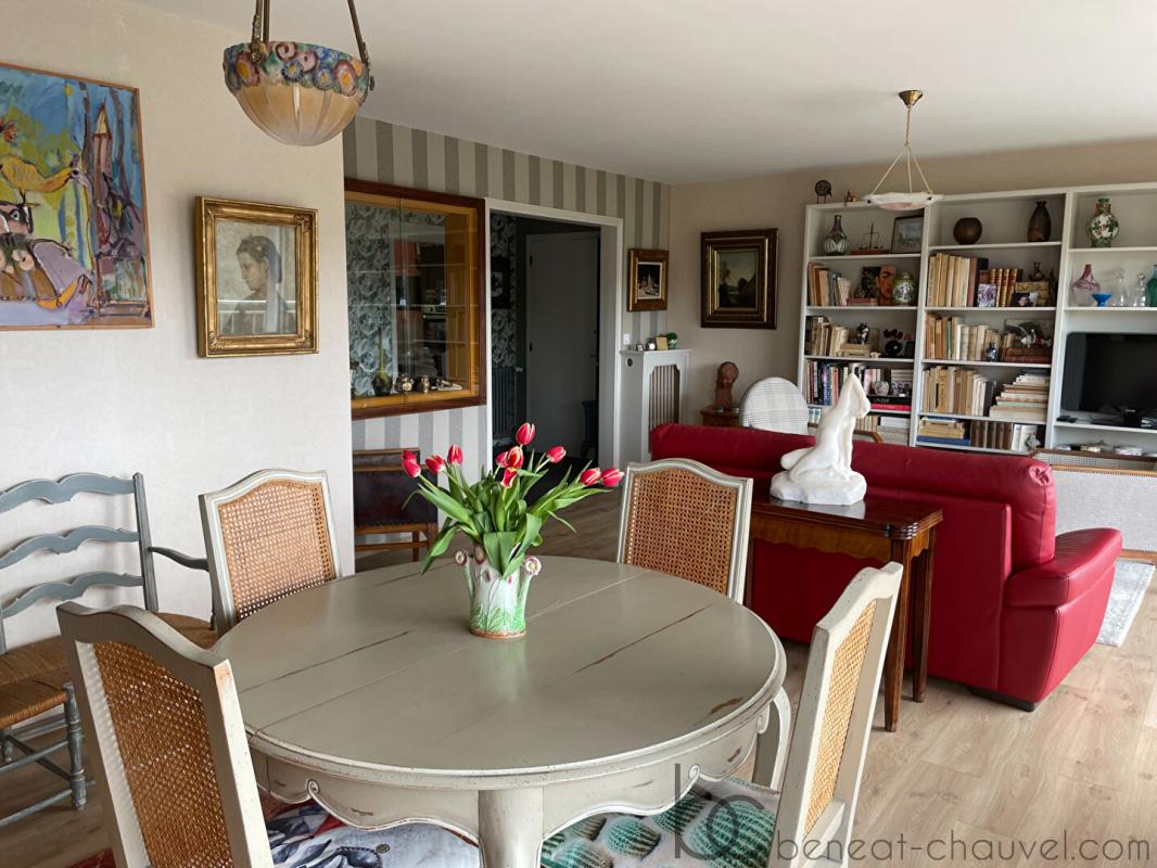Il dispose d’une entrée, séjour salon avec bibliothèque, exposé sud ouest avec vue dégagée sur la ville et la verdure, cuisine indépendante aménagée et équipée avec coin repas communicant avec une arrière cuisine/buanderie, deux grandes chambres dont une avec placard, dressing, deux salles d’eau avec wc,