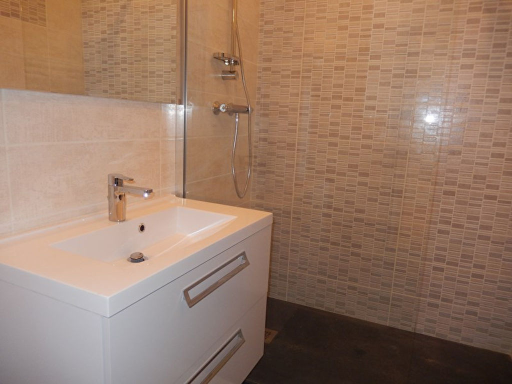 entrée avec placard, vaste séjour-salon plein sud donnant sur balcon de 8 m² ,dégagement muni d’un grand placard, 2 chambres, salle d’eau aménagée (douche à l’italienne), 2 places de parking dont 1 en sous-sol, cave.