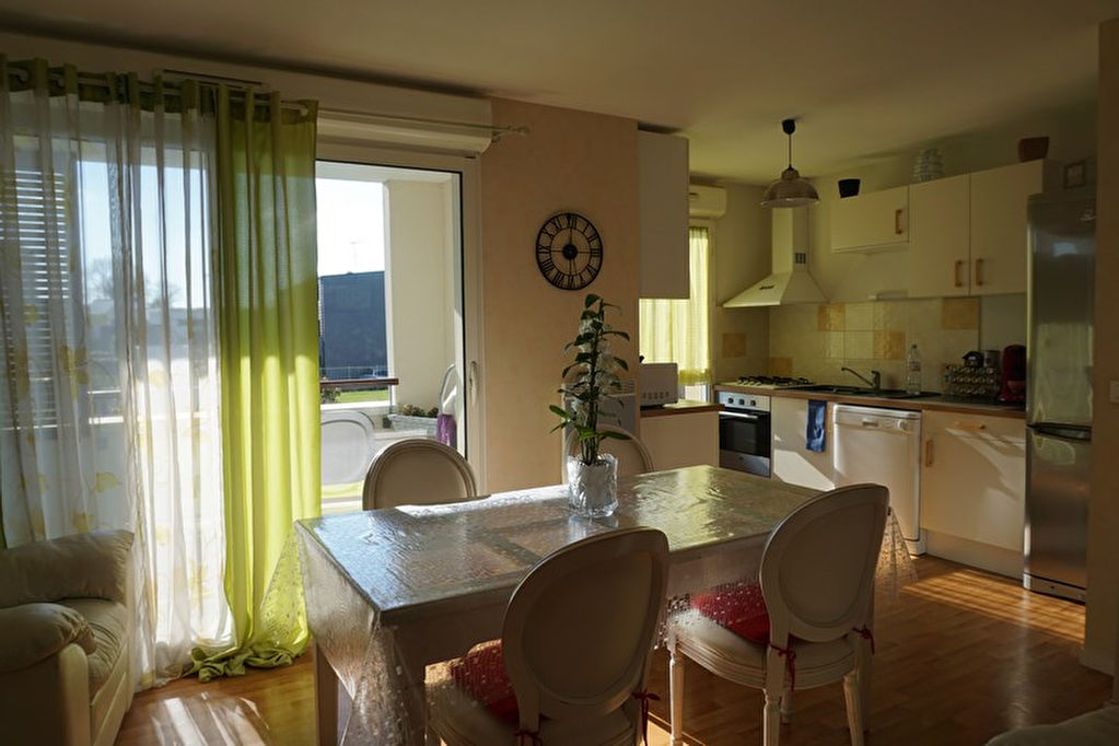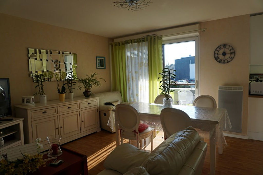 Vannes "Limoges", dans résidence de très bon standing avec ascenseur, charmant 3 pièces de 58 m² comprenant hall, séjour-salon sur terrasse au sud, cuisine aménagée, 2 chambres, salle de bains, wc. Garage.