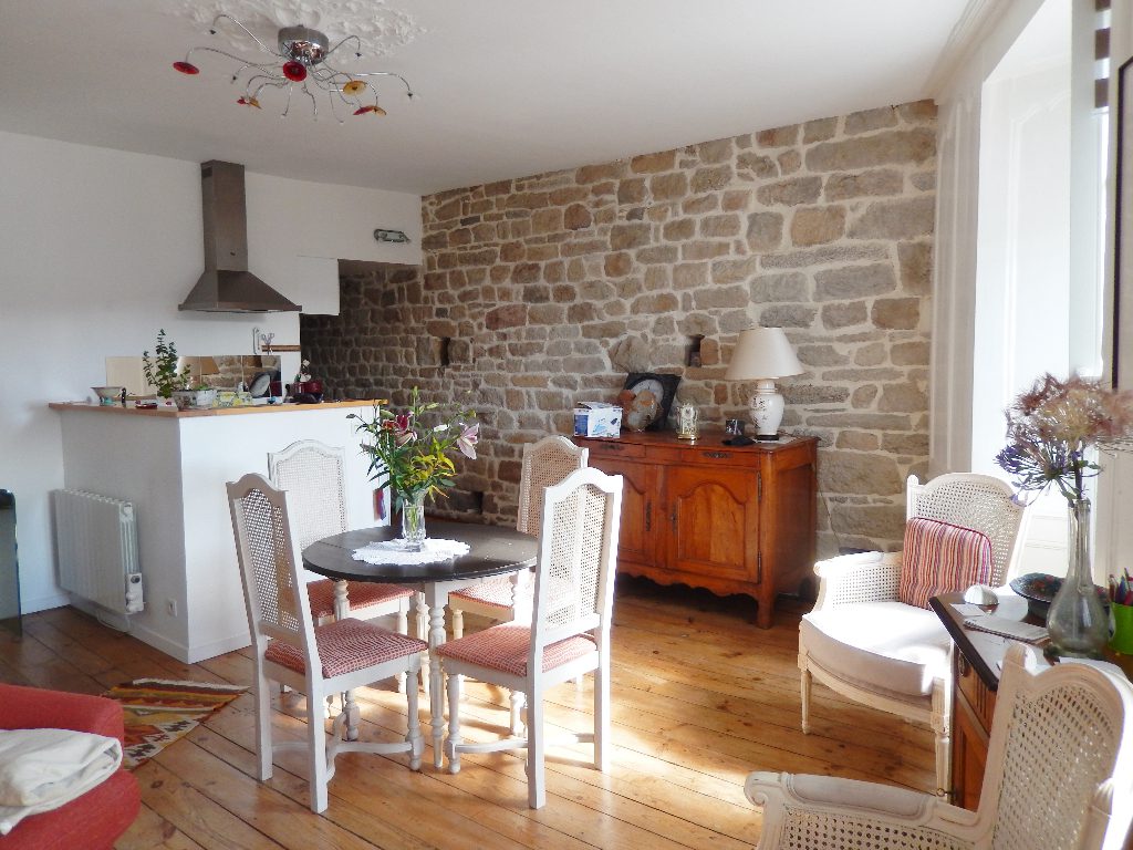 Exclusivité ! Vannes, Au coeur de l’intramuros, vue dégagée pour ce Magnifique appartement rénové avec goût comprenant : Entrée, séjour salon sur parquet classé, cuisine ouverte aménagée et équipée (réfrigérateur, plaque de cuisson gaz, four, lave vaisselle, hotte), une chambre avec bibliothèque intégrée, petite chambre, espace bureau, salle de bains, wc. Une cave. COUP DE COEUR !