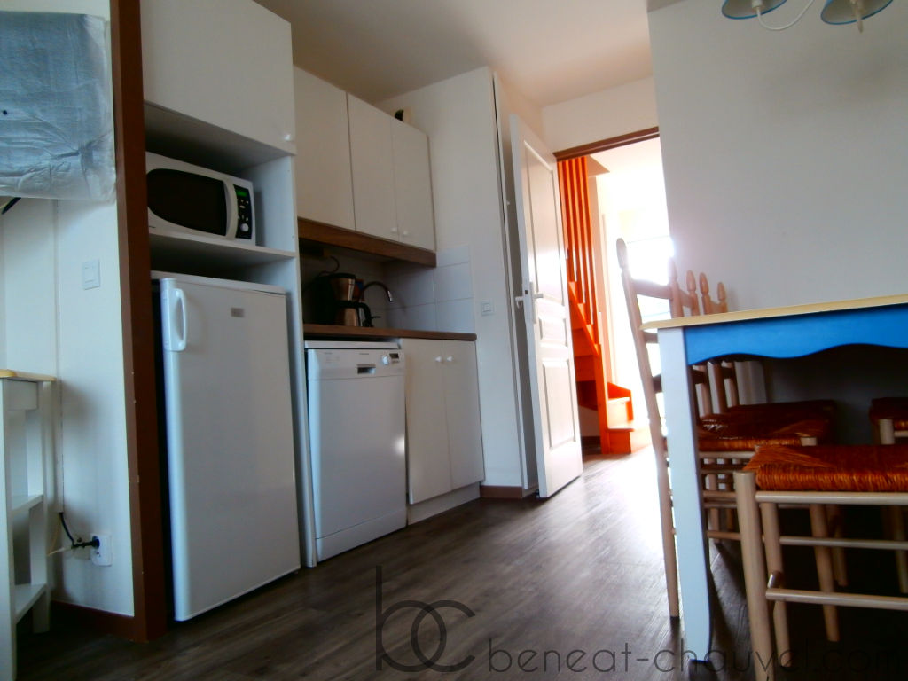 Le Cabinet BENEAT CHAUVEL vous propose une belle situation pour cet appartement en duplex comprenant un séjour salon donnant sur un balcon, kitchenette aménagée équipée, une chambre cabine, salle d’eau avec WC et à l’étage belle chambre, salle de bains avec WC. Deux places de parking aériennes. Résidence de qualité au calme et à quelques pas du PORT CROUESTY avec piscine.