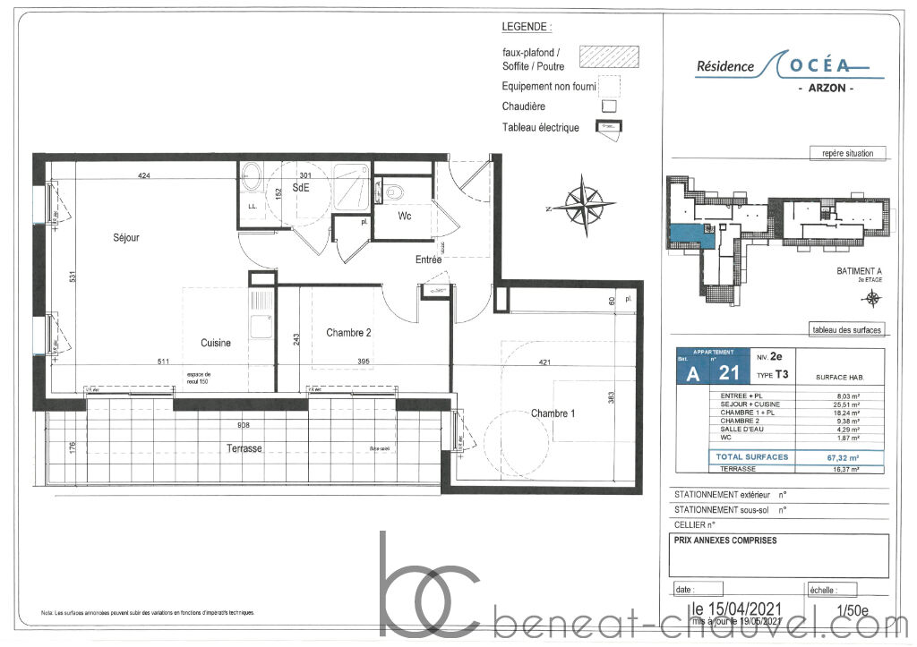 Emplacement et environnement de 1er choix à 200 m centre bourg et Port Crouesty pour cette résidence de 41 logements avec ascenseur, au 2ème et dernier étage, bel appartement de type 3 comprenant entrée avec placard, séjour, coin cuisine, 2 chambres dont une avec placard, salle d’eau et WC indépendant.
