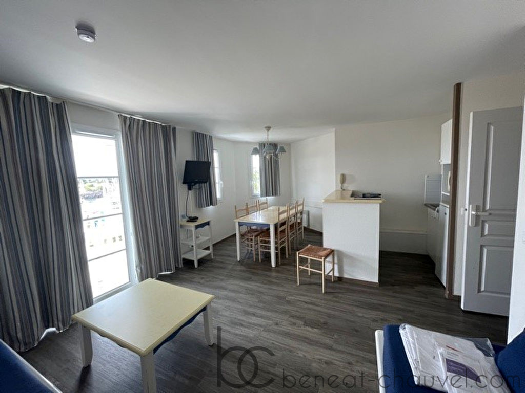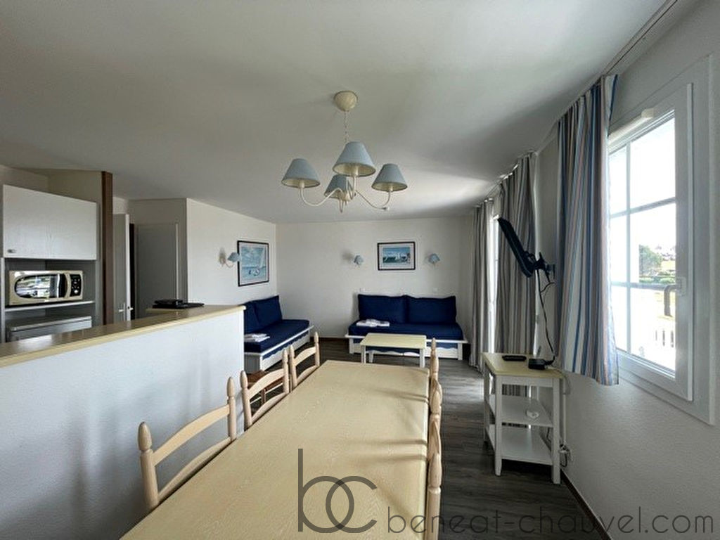 EXCLUSIVITE BENEAT CHAUVEL, appartement située au premier étage comprenant entrée, séjour salon avec coin kitchenette aménagé et équipé, chambre, chambre cabine, salle de bains et salle d’eau avec W.C.