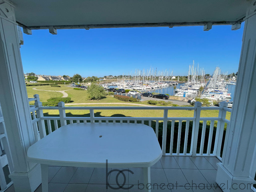 Balcon avec belle vue sur l’entrée du port. Parking aérien.