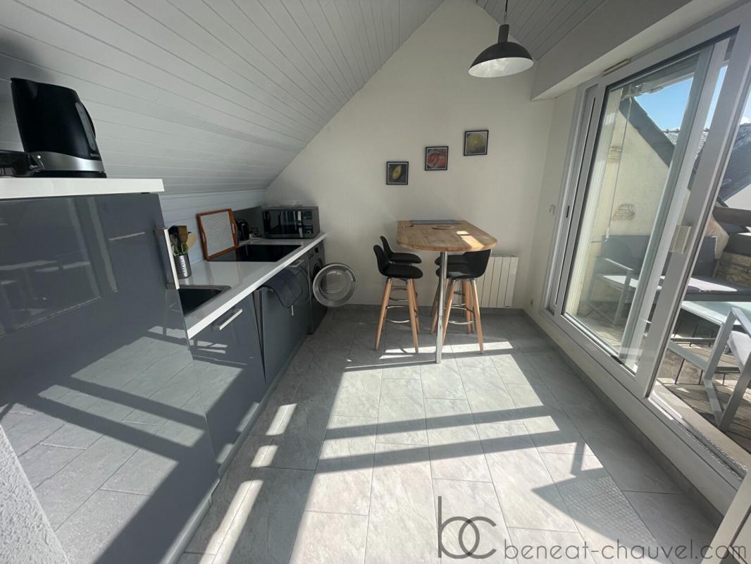 Le cabinet BENEAT CHAUVEL vous présente en EXCLUSIVITE à ARZON entre le port du Crouesty et les commerces, appartement en duplex dans une résidence avec piscine et comprenant entrée avec placard, salon, coin cuisine équipé et aménagé, chambre/cabine avec rangement. A l’étage salle de bains, chambre avec placards et WC.