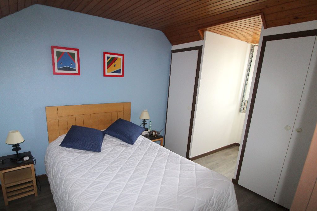 VUE MER ET ACCÈS DIRECT PLAGE pour cet appartement 3 pièces en duplex exposé sud et comprenant : Séjour salon avec coin cuisine équipé, chambre, salle d’eau, wc, belle terrasse vue mer. A l’étage : grande chambre, salle de bains avec wc.