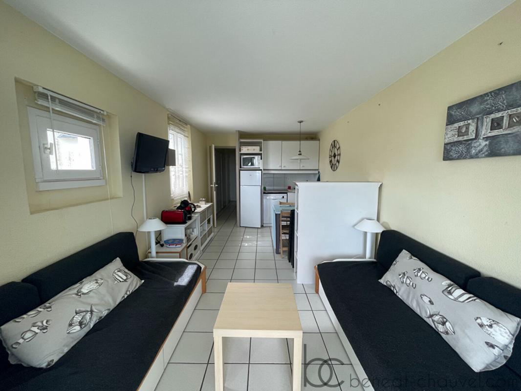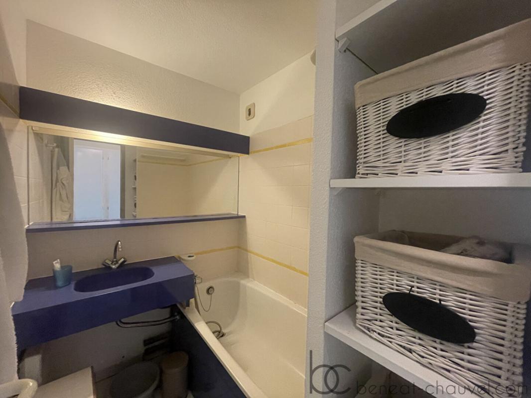 Dans une copropriété calme, à proximité des plages et des commerces, cet appartement de type 3 au 2ème étage offre un salon-séjour lumineux, une cuisine ouverte équipée et aménagée, deux chambres, une salle de bains et un WC séparé.