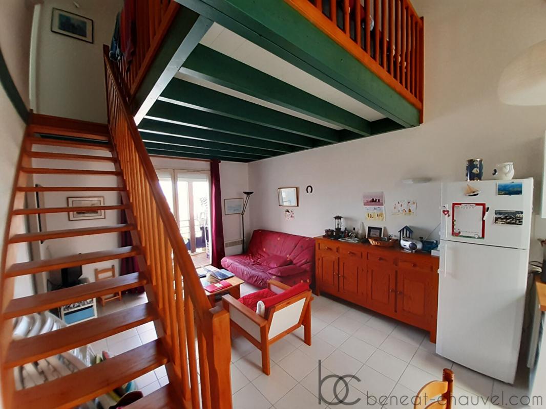 EXCLUSIVITE – Port du Crouesty, vue port et sur la baie de Quiberon pour cet appartement en duplex en bon état Sa disposition intérieure est idéale pour des vacances en famille ou entre amis. Il comprend : séjour salon avec coin cuisine aménagé et équipé, dégagement, salle de bains, chambre, W.C, grand balcon.