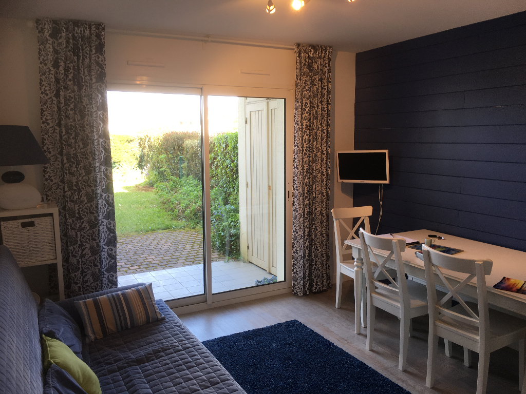 EXCLUSIVITE pour ce bel appartement 3 pièces rénové avec goût et situé au rez de chaussée d’une résidence de vacances au calme, à pied des plages et du port avec commerces et animations, et comprenant : Entrée, salon donnant sur terrasse, coin cuisine équipé, dégagement, 2 chambres, salle d’eau et WC.